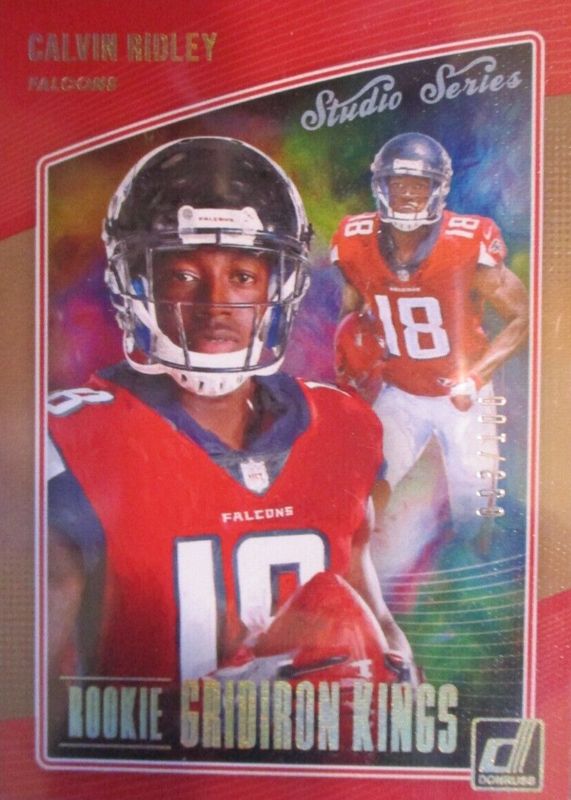 The Calvin Ridley 2018 Donruss #RGK-11 Rookie Gridiron Kings - Studio Series /100 card in Raw condition has not changed in price in the last 30 days and was last sold for $1.29 .