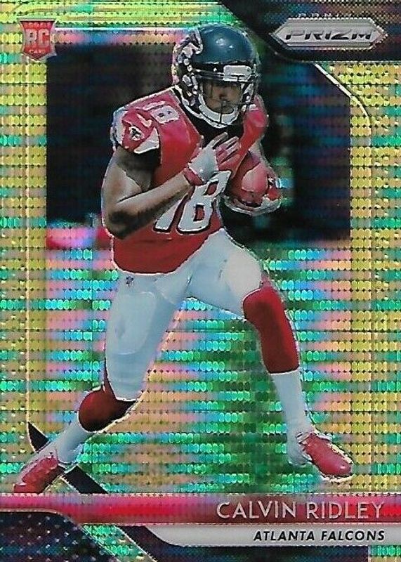 This card is 1 of 45 Calvin Ridley's card variations in the 2018 Prizm set being tracked by Sports Card Investor, including Base, Disco, Green, Lazer, and Red White Blue.