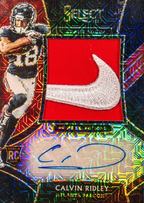 The Calvin Ridley 2018 Select #PSP-CR Prime Selections Signatures - Nike Laundry Tag /1 Rookie card in Raw condition has not changed in price in the last 30 days and was last sold for $232.50 .