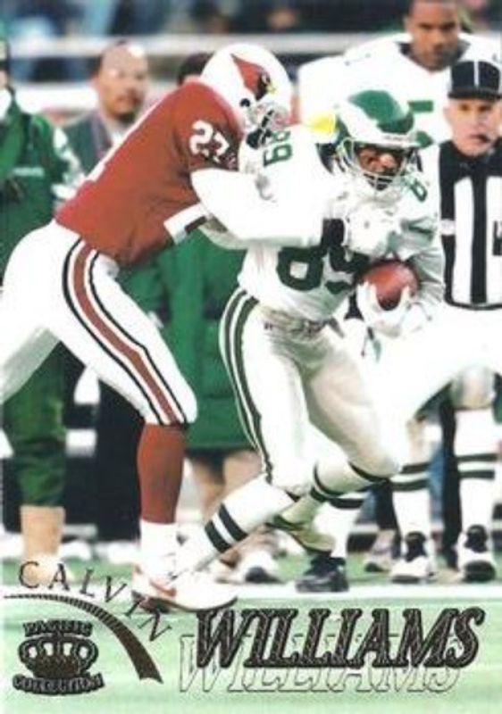 The Calvin Williams 1996 Pacific Gridiron #93 Gold card is 1 of 5 Calvin Williams' card variations in the 1996 Pacific Gridiron set being tracked by Sports Card Investor, including Base, Copper, Platinum, and Red.