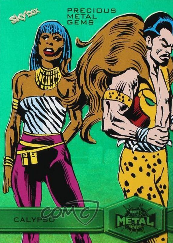 Recent Sales of Calypso 2021 Skybox Marvel Metal Universe Spider-Man #115 Precious Metal Gems Green (High Series) /10 BGS 10 Pristine