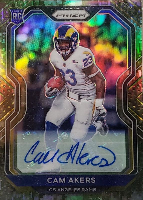 Cam Akers' Football cards are available in at least 32 sets. Cam Akers' biggest 7-day price movers are 2020 Prizm #376 Rookie Autographs - Camo /25, 2020 National Treasures #CRS-CA Crossover Rookie Patch Autographs - Laundry Tag /5, and 2020 Contenders #121 Rookie Ticket Auto Variation - Red Zone Ticket.