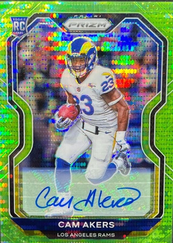 Cam Akers' Football cards are available in at least 32 sets. Cam Akers' biggest 7-day price movers are 2020 Prizm #376 Rookie Autographs - Neon Green Pulsar, 2025 Certified #MS-CAK Mirror Signatures - Mirror Lime Green /15, and 2025 Certified #MS-CAK Mirror Signatures - Mirror Black /1.