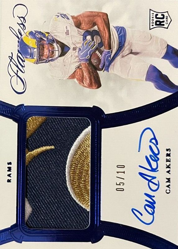 The Cam Akers 2020 Flawless #RPA-CAK Rookie Patch Auto - Sapphire /10 card in Raw condition has not changed in price in the last 30 days and was last sold for $213.50 .