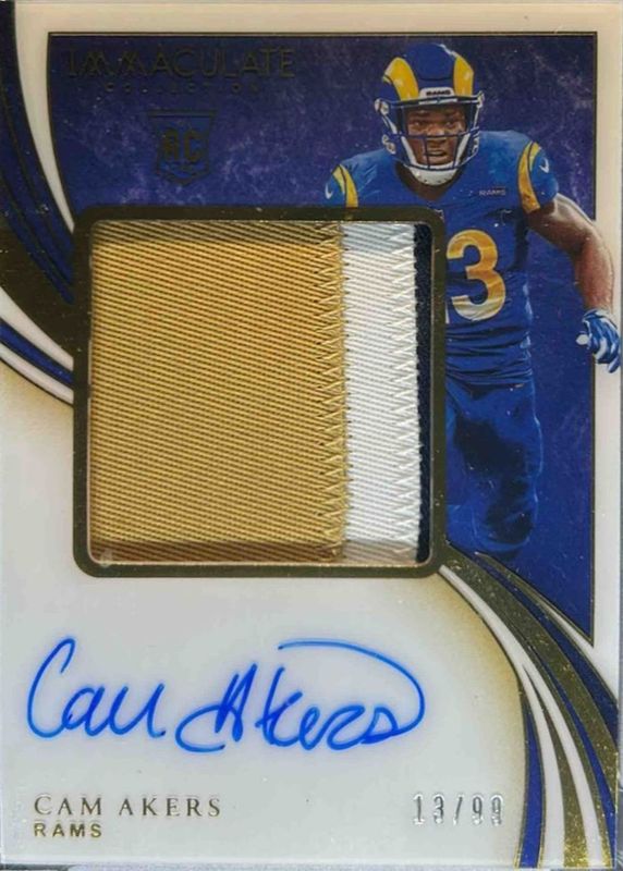 The Cam Akers 2020 Immaculate #PPR-CAK Premium Patch Rookie Autographs (/99) card in Raw condition has not changed in price in the last 30 days and was last sold for $3.26 .