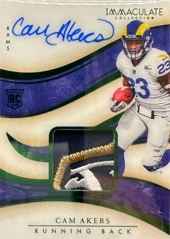 This card is 1 of 25 Cam Akers' card variations in the 2020 Immaculate set being tracked by Sports Card Investor, including Immaculate Numbers Rookie Patch Autographs (/23), Immaculate Rookie Eye Black Jersey Autographs (/99), Immaculate Rookie Shadowbox Signatures (/99), Immaculate Rookie Signature Patches (/99), and Premium Patch Rookie Autographs (/99).