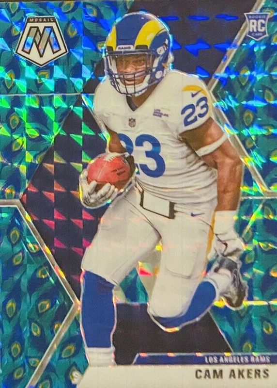 The Cam Akers 2020 Mosaic #221 Choice Peacock /(SSP) Rookie card in Raw condition has not changed in price in the last 30 days and was last sold for $48.47 .