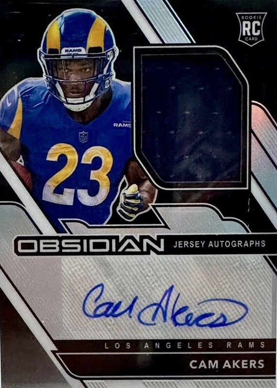 The Cam Akers 2020 Obsidian #221 Rookie Jersey Autographs (/150) card in Raw condition has not changed in price in the last 30 days and was last sold for $6.00 .