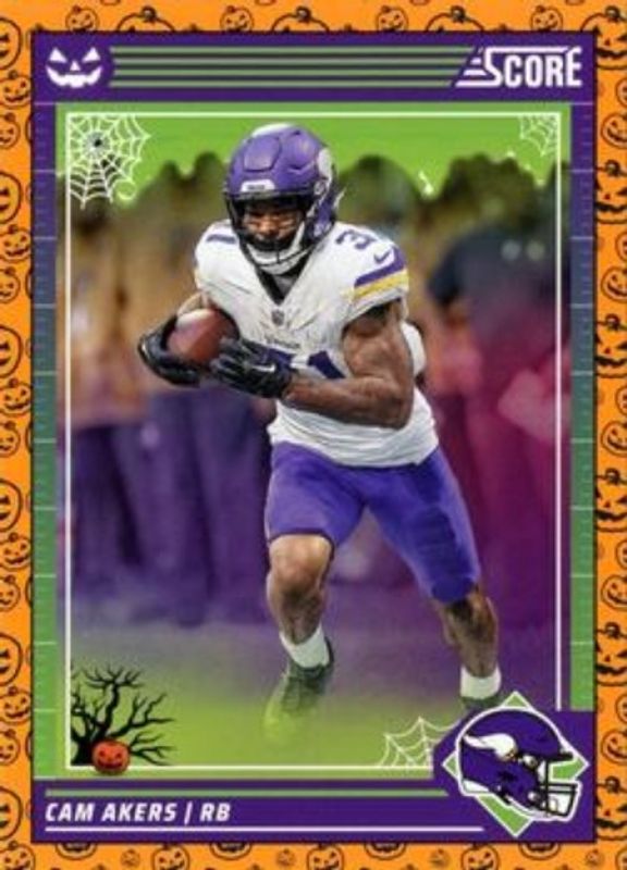 The Cam Akers 2024 Score-A-Treat #182 Base card is 1 of 3 Cam Akers' card variations in the 2024 Score-A-Treat set being tracked by Sports Card Investor, including Green Bats, and Trick or Treat /99.