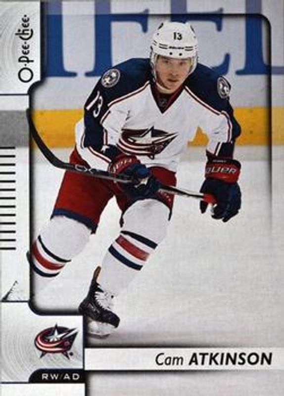 The Cam Atkinson 2017 O-Pee-Chee #85 Base card is 1 of 13 Cam Atkinson's card variations in the 2017 O-Pee-Chee set being tracked by Sports Card Investor, including Rainbow Foil, Red, Retro, Retro Blank Back, and Black Rainbow Foil /100.