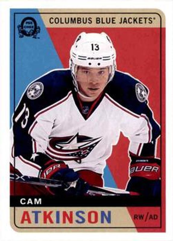The Cam Atkinson 2017 O-Pee-Chee #85 Retro card is 1 of 13 Cam Atkinson's card variations in the 2017 O-Pee-Chee set being tracked by Sports Card Investor, including Base, Rainbow Foil, Red, Retro Blank Back, and Black Rainbow Foil /100.