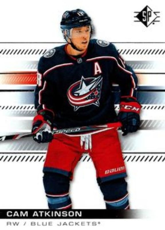 The Cam Atkinson 2019 SP #53 Base /1199 card is 1 of 5 Cam Atkinson's card variations in the 2019 SP set being tracked by Sports Card Investor, including Blue, Authentic Profiles - Blue, Authentic Profiles Jersey, and Authentic Profiles /649.