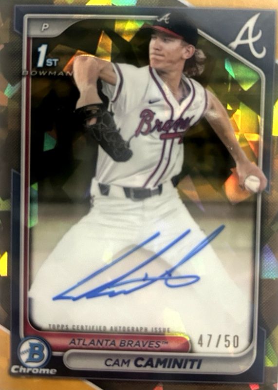 2024 Bowman Draft Sapphire Cam Caminiti 1st GOLD Auto /50 Atlanta Braves CLEAN
