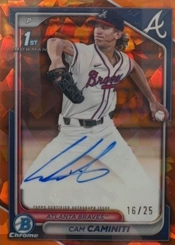 Best Prices Available For Sale of Cam Caminiti 2024 Bowman Draft Sapphire Edition #CPA-CC Chrome Prospect Auto - Orange /25 (1st)