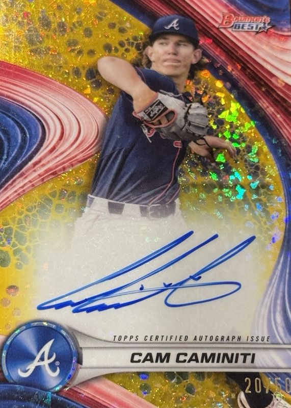 Best Prices Available For Sale of Cam Caminiti 2024 Bowman's Best #B24-CCI Best of 2024 Autographs - Gold Mini-Diamond Refractor /50