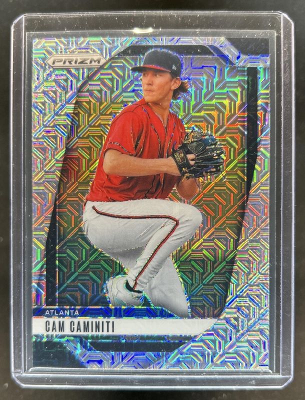 The Cam Caminiti 2025 Prizm #176 Mojo /25 card is 1 of 59 Cam Caminiti's card variations in the 2025 Prizm set being tracked by Sports Card Investor, including Base, Blue Ice, Glitter, Green, and Green Ice.