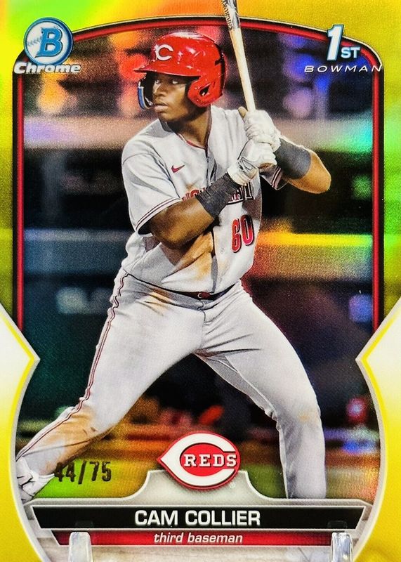 Auctions Ending Soon for Cam Collier 2023 Bowman #BCP-125 Chrome Prospects - Yellow Refractor /75 (1st) RAW