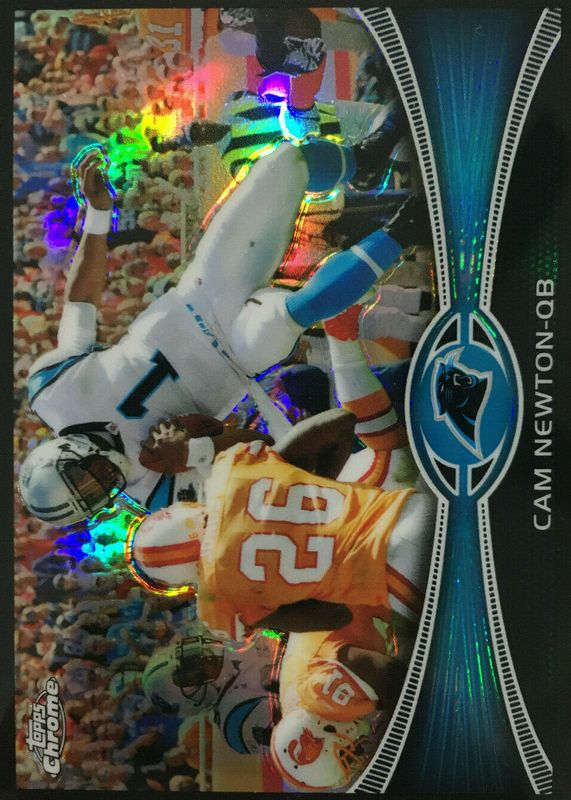 The Cam Newton 2012 Topps Chrome #20 Black Refractor /299 card in Raw condition has moved up $2.49 (+16.1%) in the last 30 days and was last sold for $17.99 .