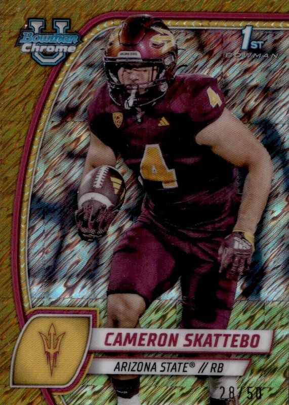 Cameron Skattebo #'d /50 Gold Shimmer - 2024 Bowman Chrome University #37 - ASU
