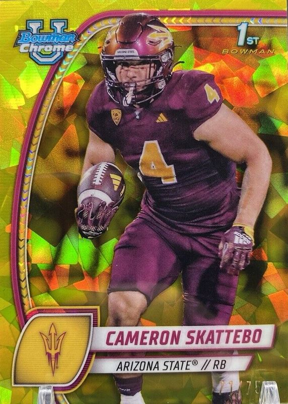 2024 Bowman Chrome University Sapphire Cameron Skattebo 1st Yellow Refractor /75