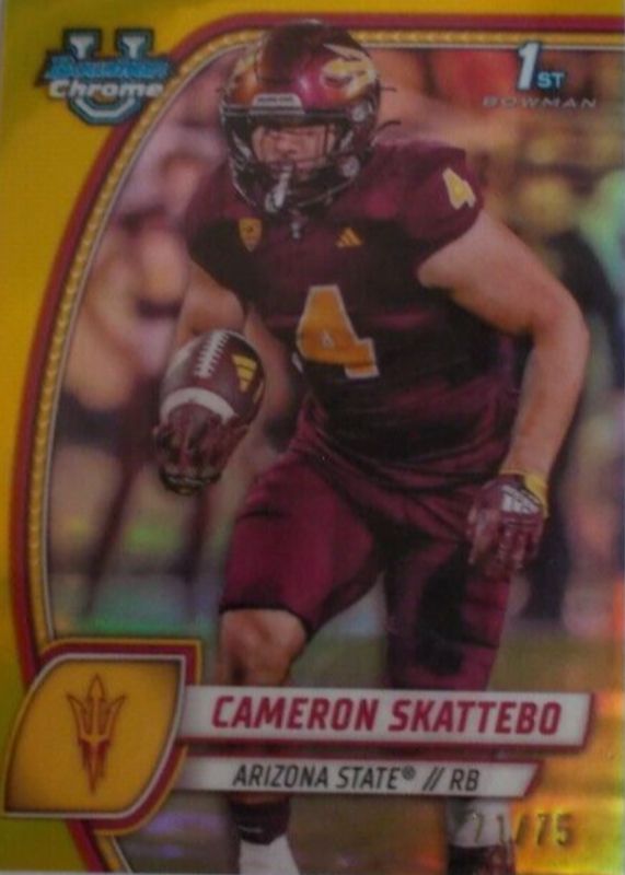 2024 Topps Chrome Bowman U Cameron Skattebo #37 Yellow /75-Arizona State
