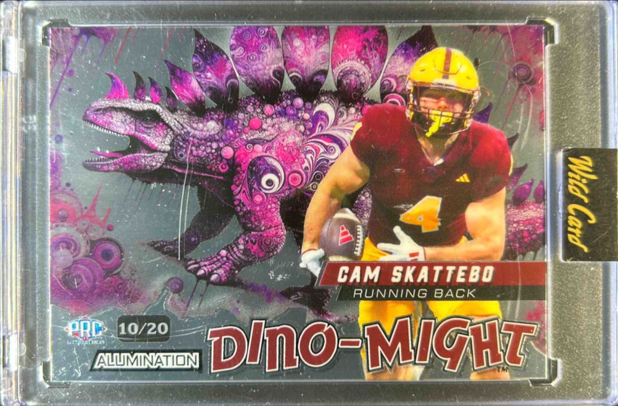 Cam Skattebo 2024 Wild Card Alumination DinoMight #DMSTG1-CS Stegosaurus - Mirror Foil Board Purple /20 RAW Price Guide
