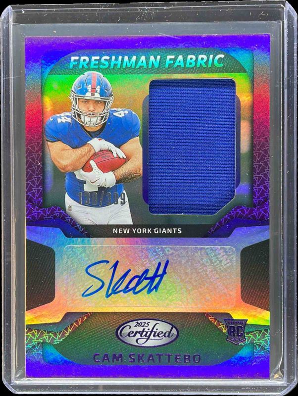 Cam Skattebo 2025 Certified #FBC-CSO Freshman Fabric Signatures - Mirror Purple /399 Rookie RAW Price Guide