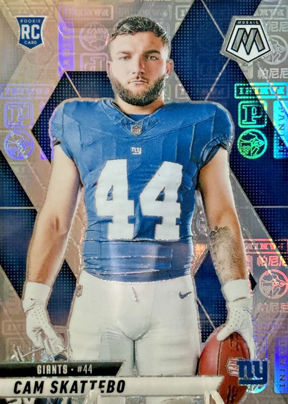 The Cam Skattebo 2025 Mosaic #271 Rookie Variation - Silver Knight /149 card in Raw condition has moved up $1.50 (+4.2%) in the last 30 days and was last sold for $37.50 .