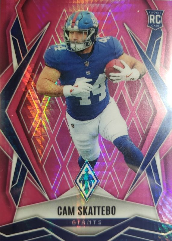 The Cam Skattebo 2025 Phoenix #168 Pink Hyper /299 Rookie card in Raw condition has moved up $1.20 (+7.8%) in the last 30 days and was last sold for $16.50 .