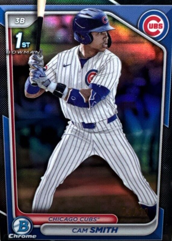 This card is 1 of 50 Cam Smith's card variations in the 2024 Bowman Draft set being tracked by Sports Card Investor, including Chrome (1st), Chrome - Bubble Gum (1st), Chrome - Lunar Glow Refractor (1st), Chrome - Peanuts (1st), and Chrome - Pearl Refractor (1st).