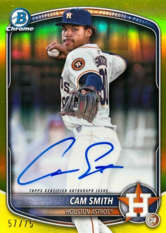 2025 Bowman Cam Smith Auto /75 Chrome Prospect Yellow Refractor #CPA-CSM Astros