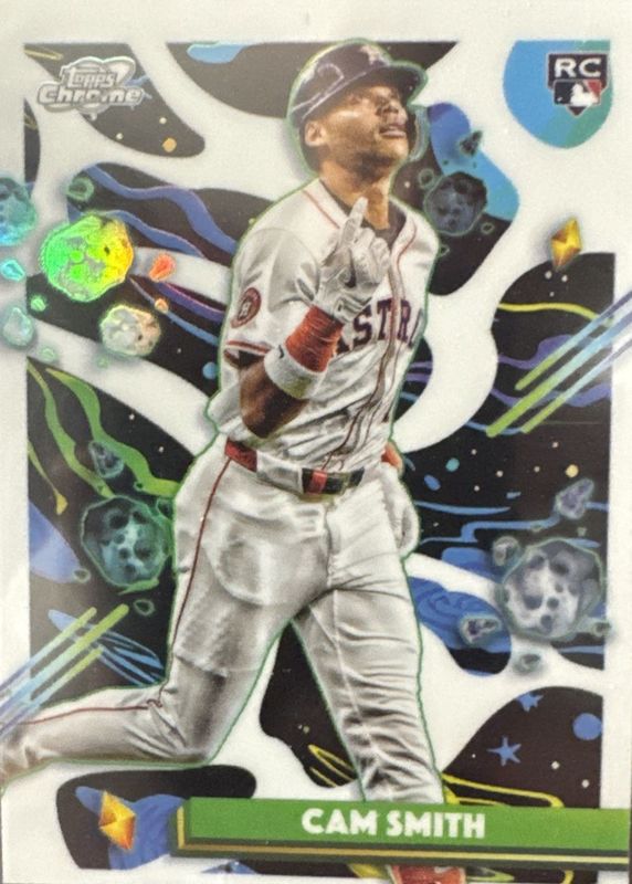 This card is 1 of 13 Cam Smith's card variations in the 2025 Topps Chrome Cosmic set being tracked by Sports Card Investor, including Base, Nucleus Refractor, Refractor, Aqua Equinox Refractor /199, and Purple Nebula Refractor /150.