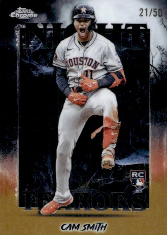 The Cam Smith 2025 Topps Chrome Update #NT-19 Night Terrors - Gold Refractor /50 Rookie card in Raw condition has not changed in price in the last 30 days and was last sold for $48.74 .