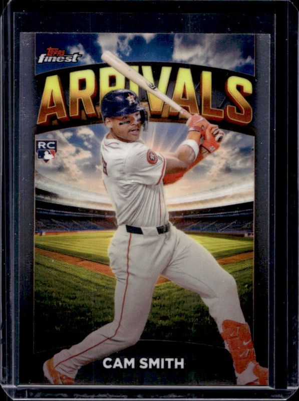 The Cam Smith 2025 Topps Finest #A-26 Arrivals Rookie card is 1 of 143 Cam Smith's card variations in the 2025 Topps Finest set being tracked by Sports Card Investor, including Common, Rare, Uncommon, Common - Checkerboard Refractor, and Common - Refractor.