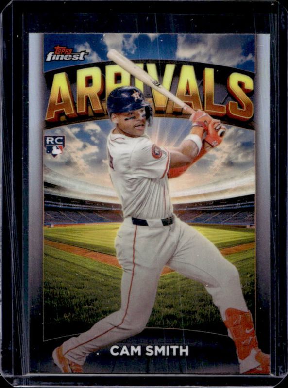 The Cam Smith 2025 Topps Finest #A-26 Arrivals - Refractor Rookie card is 1 of 143 Cam Smith's card variations in the 2025 Topps Finest set being tracked by Sports Card Investor, including Common, Rare, Uncommon, Common - Checkerboard Refractor, and Common - Refractor.