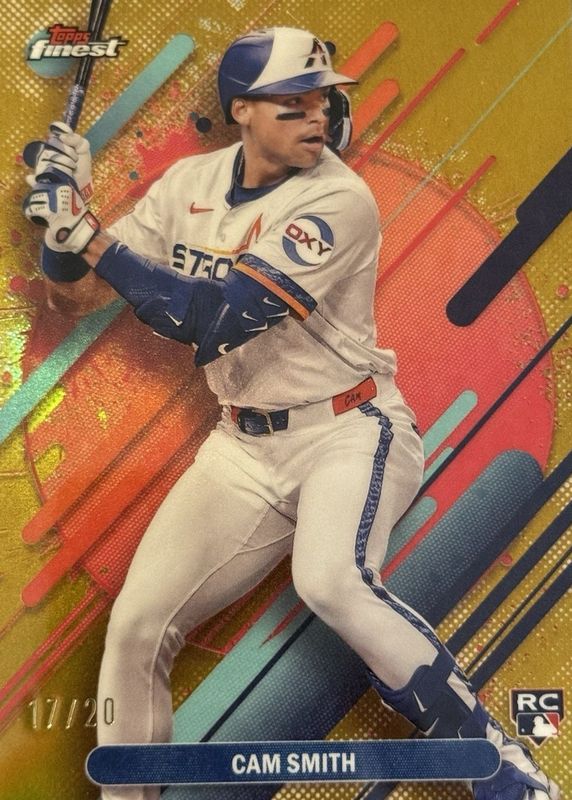The Cam Smith 2025 Topps Finest #223 Rare - Gold Refractor /20 Rookie card in Raw condition has not changed in price in the last 30 days and was last sold for $59.87 .