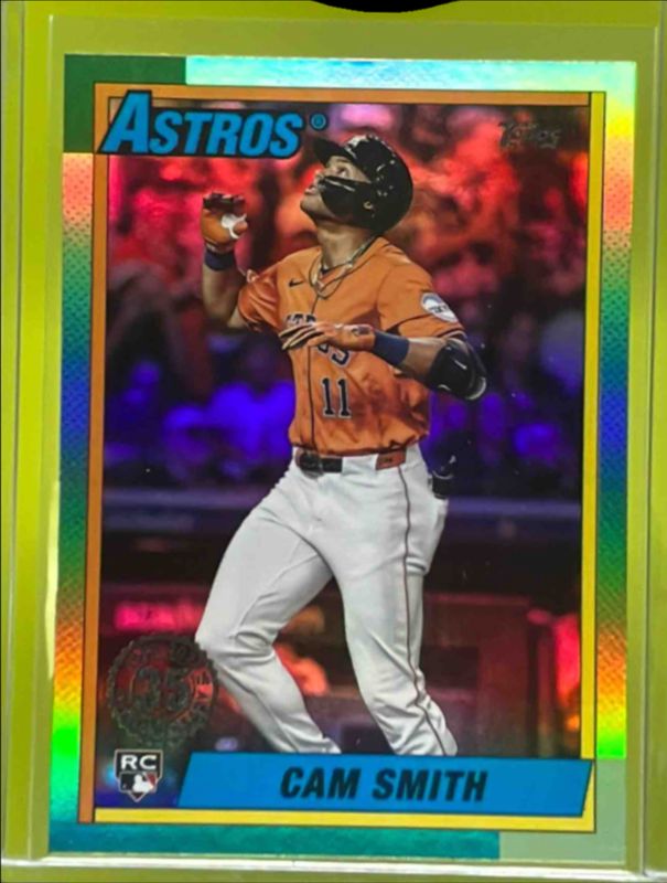 The Cam Smith 2025 Topps Update #U90-44 1990 Topps - Pink Foil Rookie card is 1 of 196 Cam Smith's card variations in the 2025 Topps Update set being tracked by Sports Card Investor, including Base, Rookie Debut, Aqua Holo Foil, Aqua Rainbow Foil, and Diamante Foil.