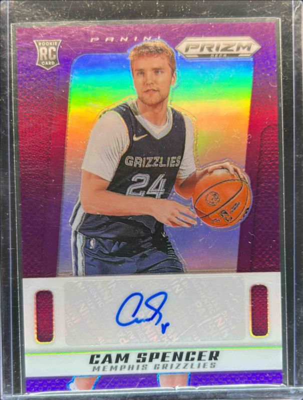The Cam Spencer 2024 Prizm Deca #PDS-SPE Signatures - Purple /75 Rookie card is 1 of 25 Cam Spencer's card variations in the 2024 Prizm Deca set being tracked by Sports Card Investor, including Base, Silver, Red /199, Blue /149, and Purple /99.