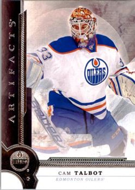 The Cam Talbot 2016 Upper Deck Artifacts #78 Base /499 card is 1 of 9 Cam Talbot's card variations in the 2016 Upper Deck Artifacts set being tracked by Sports Card Investor, including Ruby /299, Emerald /99, Orange /55, Gold Spectrum /25, and Materials Silver /125.