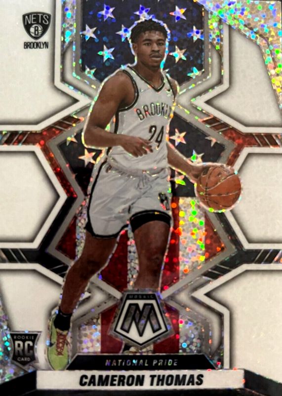 Cam Thomas 2021 Mosaic #255 National Pride - White Sparkle /(SSP) Rookie RAW Price Guide