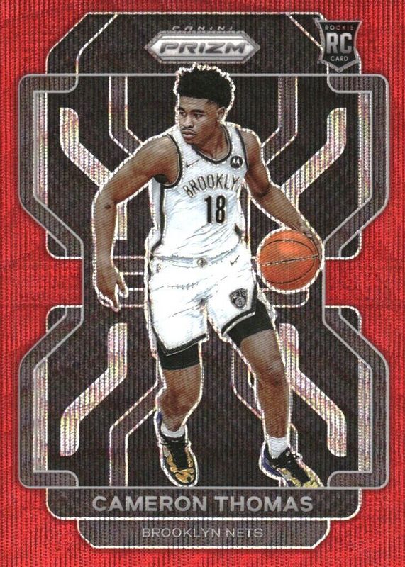 2021-22 Prizm Cameron Thomas RC Ruby / Red Wave Rookie #297 Nets PWE