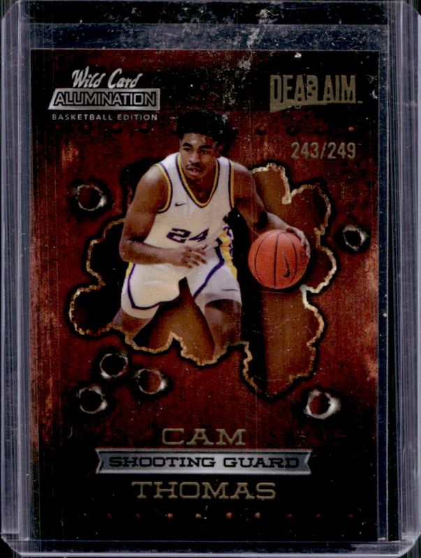 The Cam Thomas 2021 Wild Card Alumination #ADA-2 Dead Aim Gold Foil (Hobby) Orange /249 Rookie card is 1 of 238 Cam Thomas' card variations in the 2021 Wild Card Alumination set being tracked by Sports Card Investor, including Base, 100 Stripe, 10 Stripe, 20 Stripe, and 50 Stripe.