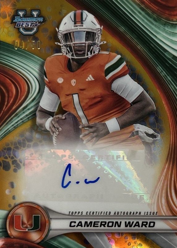 Cam Ward 2024 Bowman Best University #BOA-CWA Best of 2024 Autographs - Gold Refractor /50 RAW Price Guide