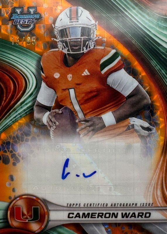 Cam Ward 2024 Bowman Best University #BOA-CWA Best of 2024 Autographs - Orange Geometric Refractor /25 RAW Price Guide