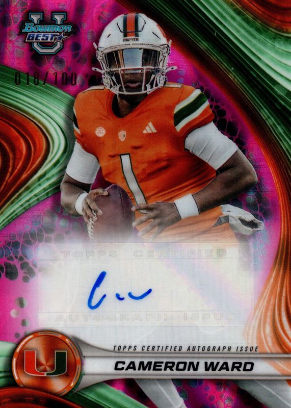 Best Prices Available For Sale of Cam Ward 2024 Bowman Best University #BOA-CWA Best of 2024 Autographs - Pink Lava Refractor /100