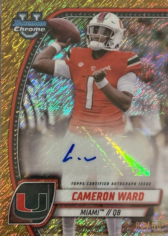 2024 Bowman Chrome U CAM WARD Cameron Ward True Gold Shimmer AUTO SSP /50 CLEAN