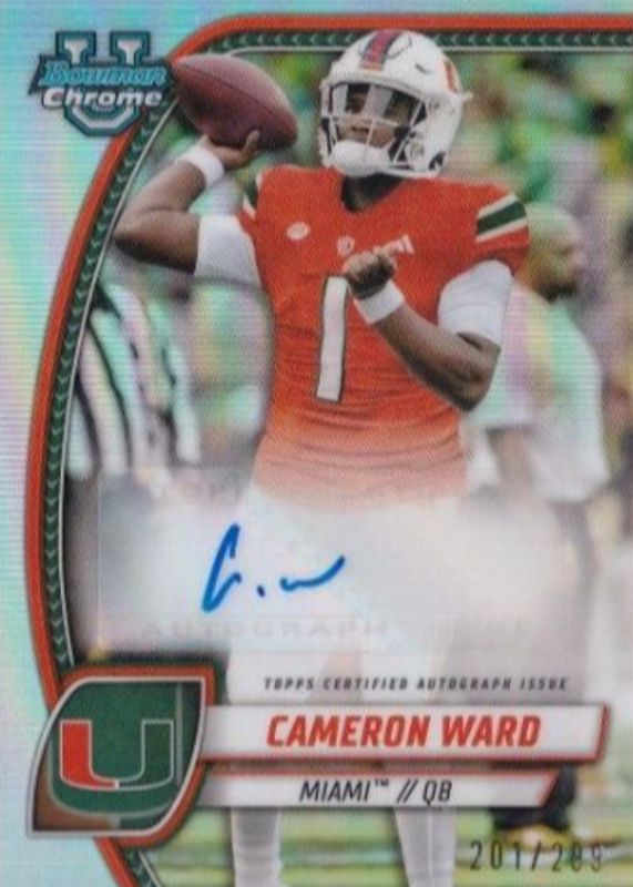 2024 Bowman U Chrome Cam Ward Refractor Autograph /299 Miami Hurricanes
