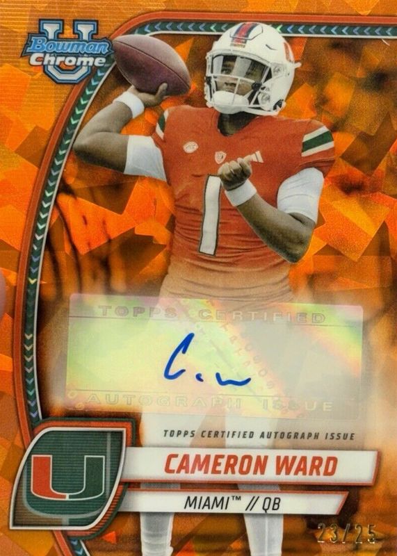 2024 Bowman Chrome University SAPPHIRE Cameron Cam Ward ORANGE /25 AUTO!