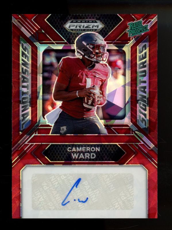 Cam Ward 2024 Prizm Draft Picks #SS-CWD Sensational Signatures - Red Ice RAW Price Guide