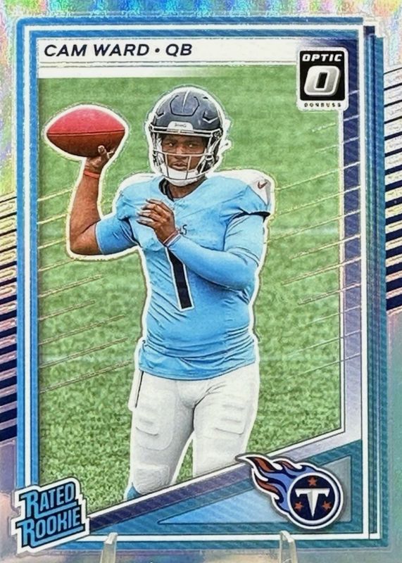 2025 Donruss Rated Rookie Cameron Ward #350 Optic Preview Holo Prizm RC Titans